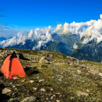 - High-quality alpine tents with sleeping bags and foam mattresses.