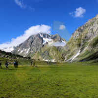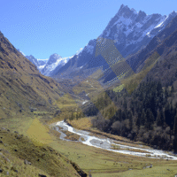 A beautiful and gradually descending trail that takes you through pine forests, grazing pastures, and vibrant wildflowers. You’ll reach Chitkul, the last inhabited village before the Indo-Tibetan border. Enjoy the wooden houses, local culture, and roaring Baspa River.