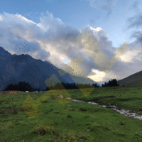 - Arrive at Litham, a serene meadow at the confluence of Pabbar and Chandranahan streams.
