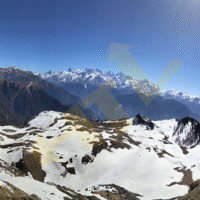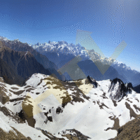 - Panoramic views of Himalayan giants: Bandarpoonch, Draupadi Ka Danda, Kala Nag, Srikanth