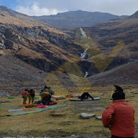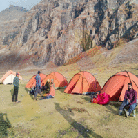 Get ready for a steep, exciting climb along the waterfall’s edge, over snow bridges or rocky trails, depending on the season. Upper Waterfall Camp, perched high above the valley, rewards you with panoramic Himalayan views and fresh alpine air.