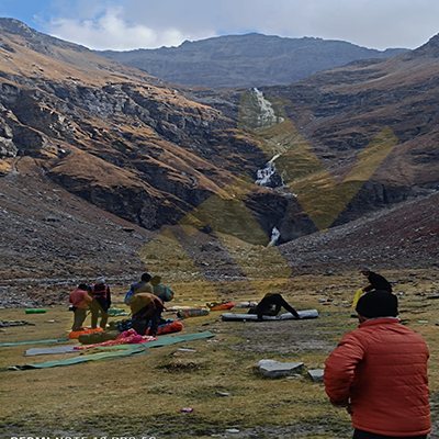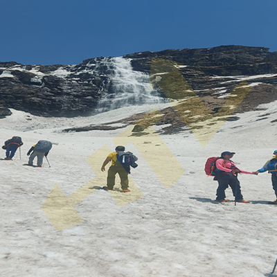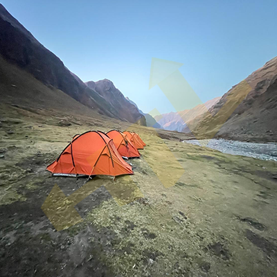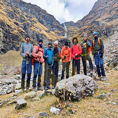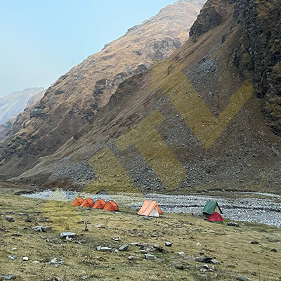 Get ready for a steep, exciting climb along the waterfall’s edge, over snow bridges or rocky trails, depending on the season. Upper Waterfall Camp, perched high above the valley, rewards you with panoramic Himalayan views and fresh alpine air.